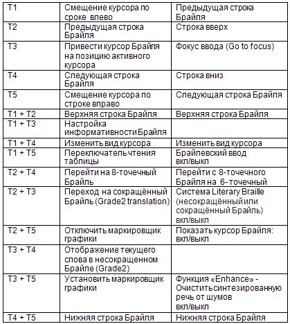 Две клавиши, расположенные по сторонам от линии Брайля, называют клавишами (eTouch keys). Они используются для прокрутки влево и вправо, а также для других функций Брайля.