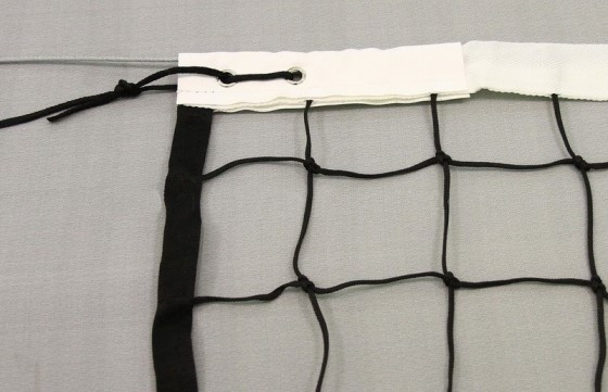 Сетка волейбольная «KV.REZAC». Стальной трос в ПВХ оболочке, длина 12,5 м. Верхняя лента из ПЭ 5 см, без нижней ленты. Усиленный низ сетки, 4 шнура для натяжения. В комплекте идут ограничительные ленты.